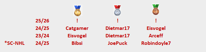 Alle NHL & AHL Tippformate der Spielleiter Crew 🏒 NHL Spacerunner 🏒 NHL Tototipp Spacerunner 🏒 NHL Playoffs Spacerunner 🏒 NHL Original Six Emptynetter 🏒 NHL Spieler Emptynetter 🏒 NHL Orakel Spacerunner 🏒 AHL (American Hockey League) Stout Für weitere Infos klickt gerne auf die einzelnen Tippspiele. Viel Spaß 😀 Eure Spielleiter Spacerunner & Emptynetter & Stout |